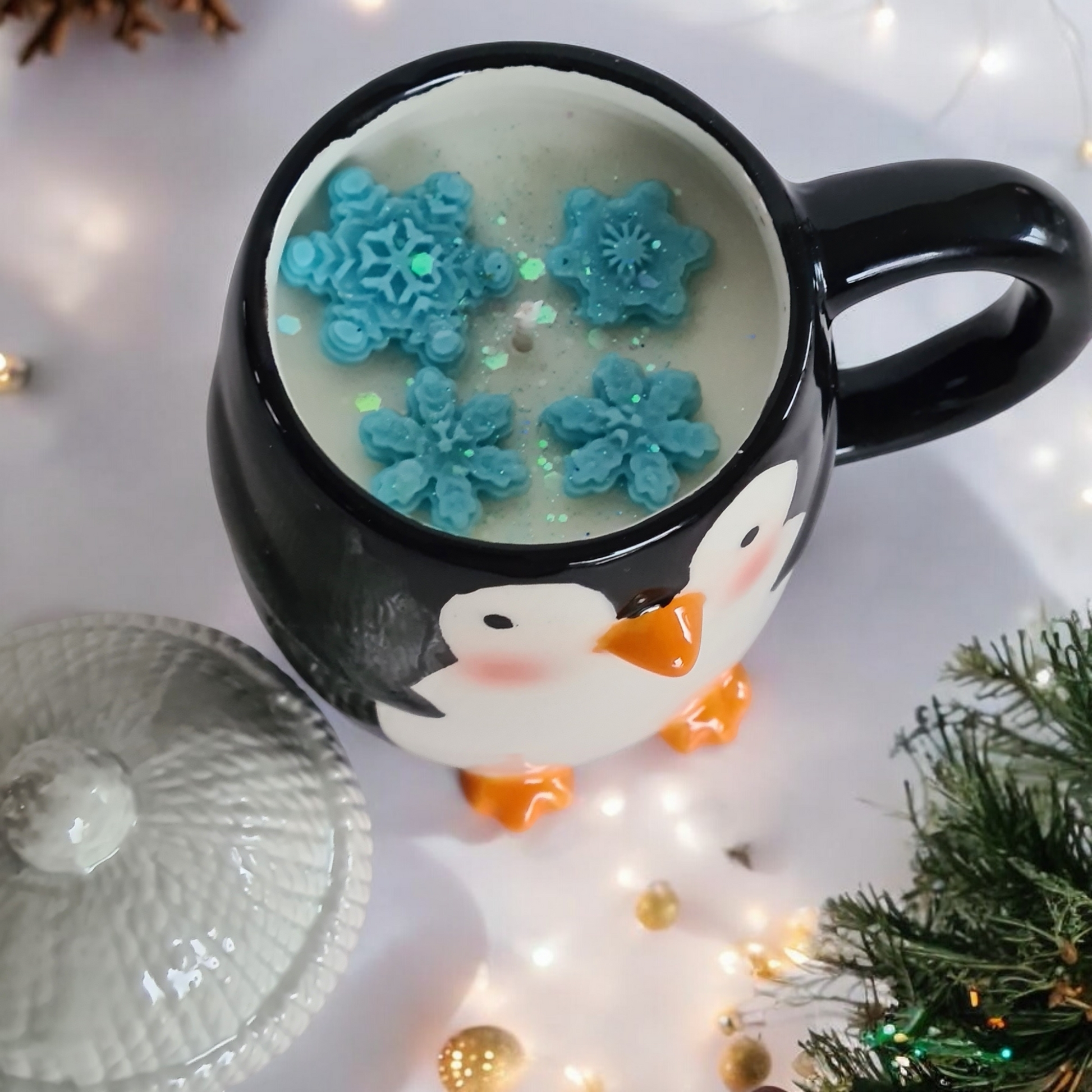 Laat je meevoeren naar een serene winterochtend, waar de lucht helder is en de bomen bedekt zijn met een dun laagje sneeuw. De Winterse Pinguïn-kaars verspreidt een frisse, zuivere geur die doet denken aan een wandeling door een besneeuwd dennenbos — rustgevend, puur en verkwikkend.