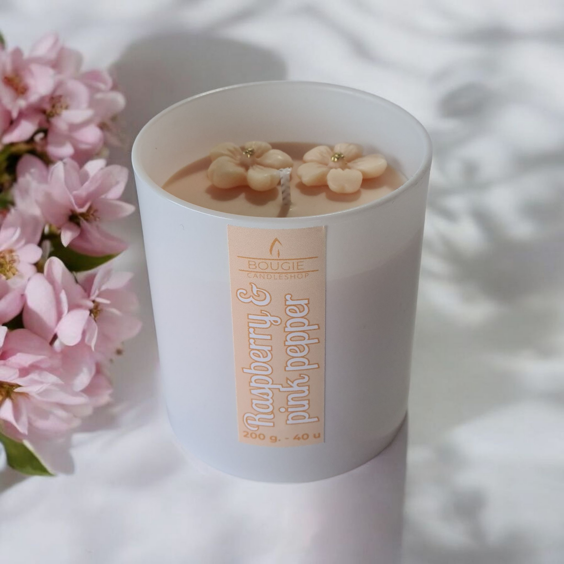 Geniet van de gedurfde en sensuele geur van Raspberry & Pink Pepper. De combinatie van fruitige framboos en kruidige pepernoten geeft deze kaars een dynamisch en verfijnd karakter. De subtiele bloemige hartnoten en warme basis van amber en muskus maken deze geur perfect voor wie houdt van een speelse, luxueuze sfeer.