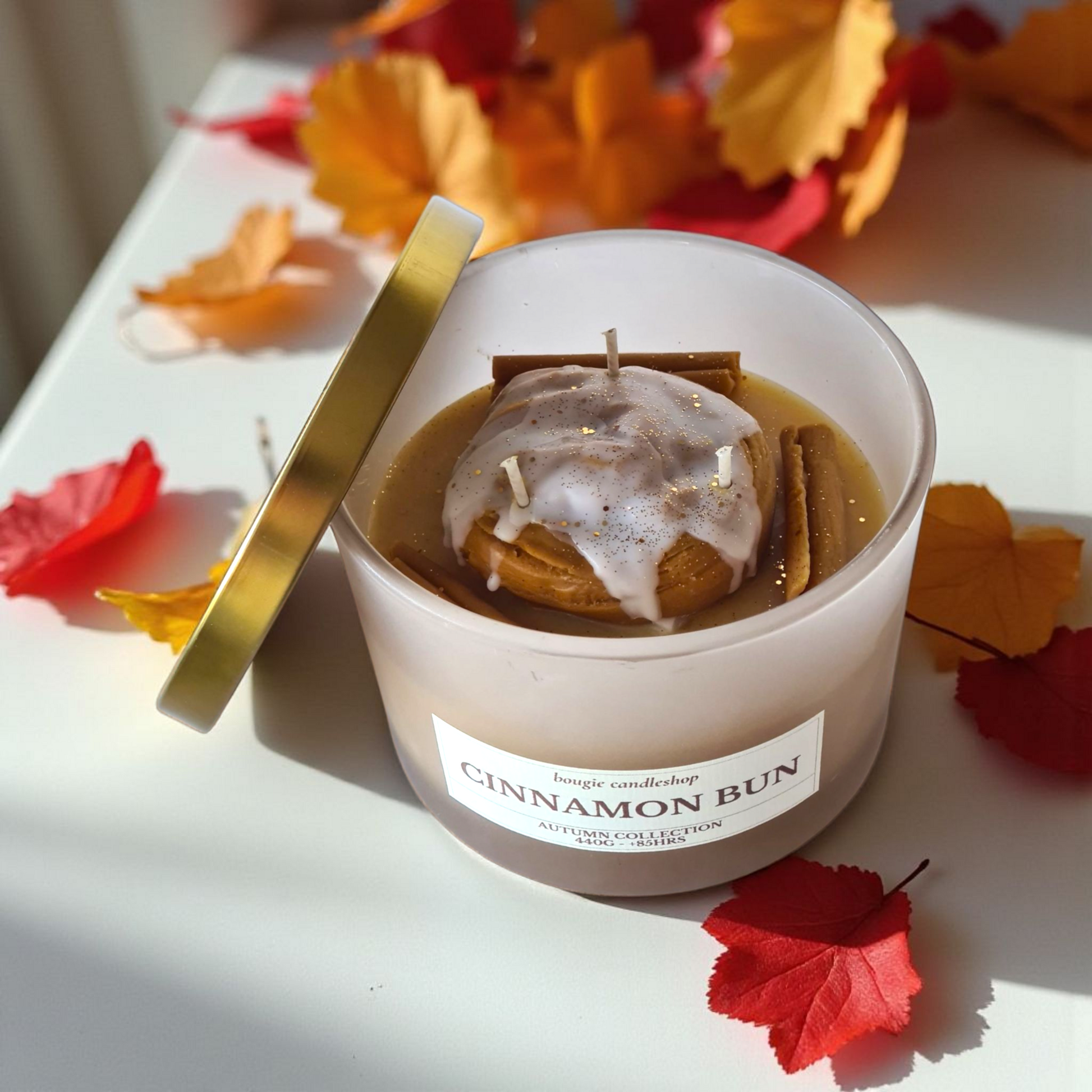 Verwen jezelf met Cinnamon Bun, de geur van versgebakken kaneelbroodjes die je woonkamer omtovert in een warme bakkerij. Zoete vanille en rijke honing brengen comfort en gezelligheid op frisse herfstdagen.