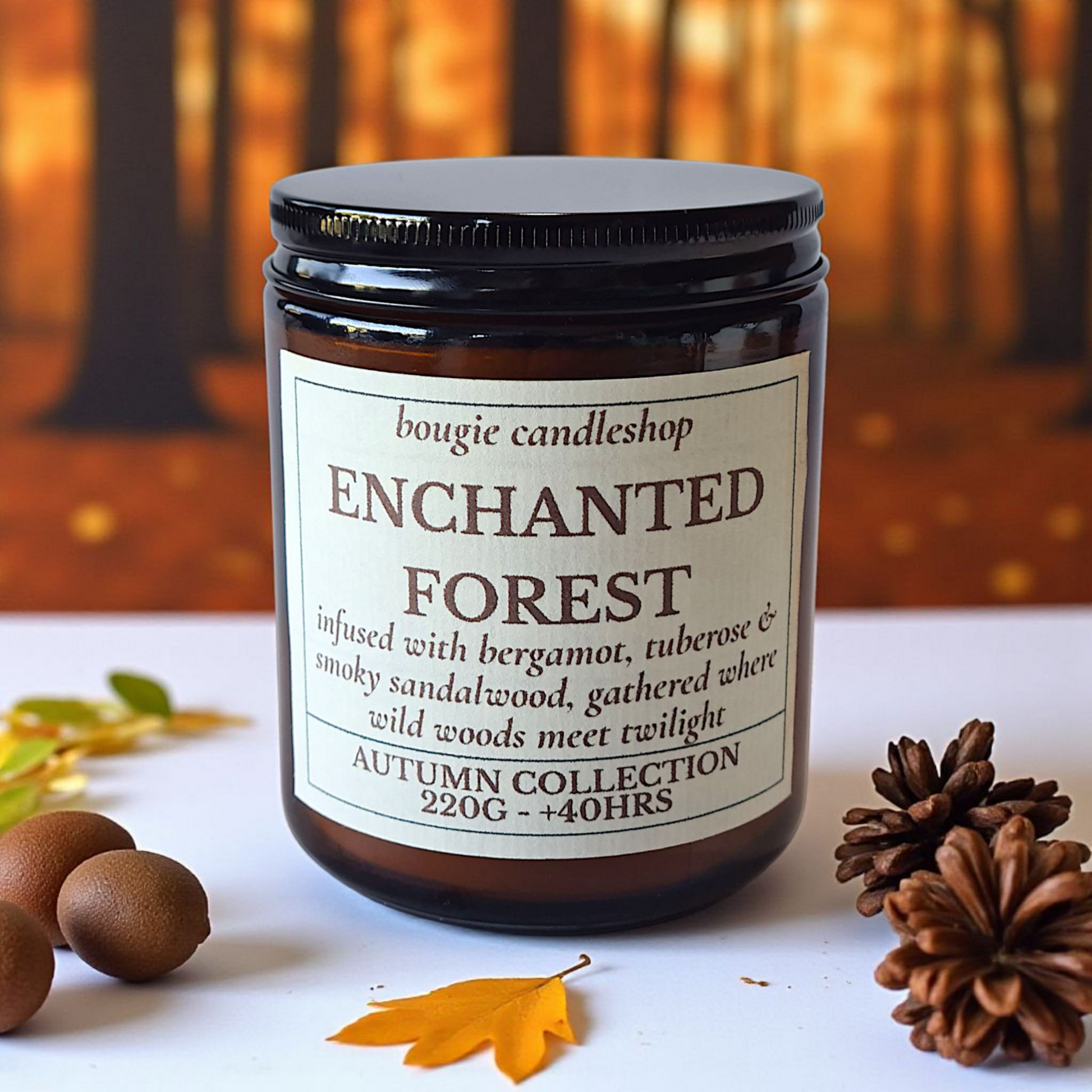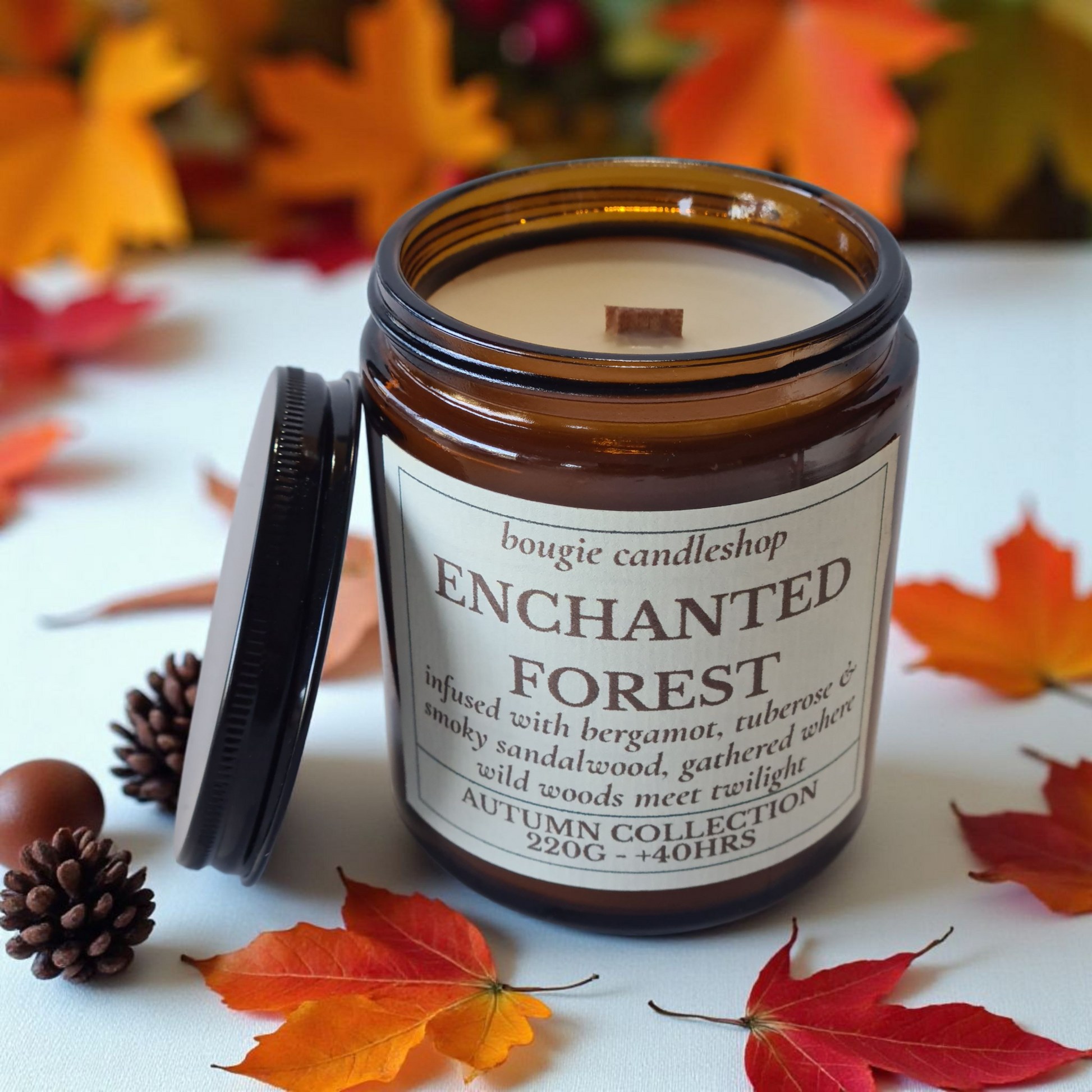 Enchanted Forest neemt je mee naar een mystiek herfstbos. Een gelaagde geur van bloemen, harsen en hout met een warme amberbasis. Rustgevend, diep en een tikje betoverend.