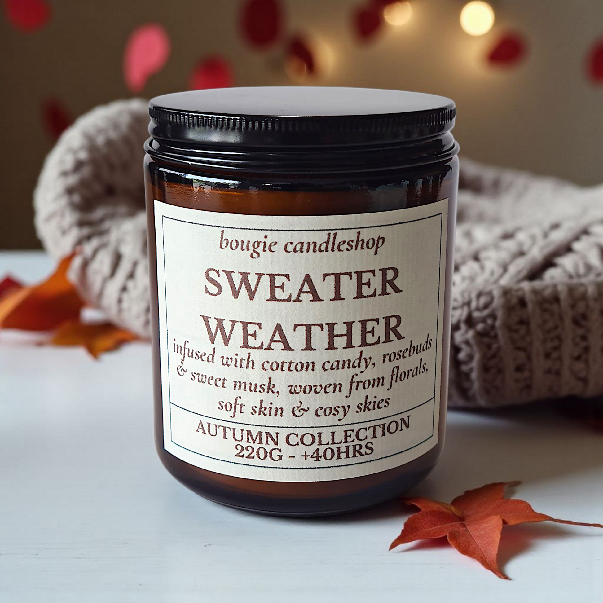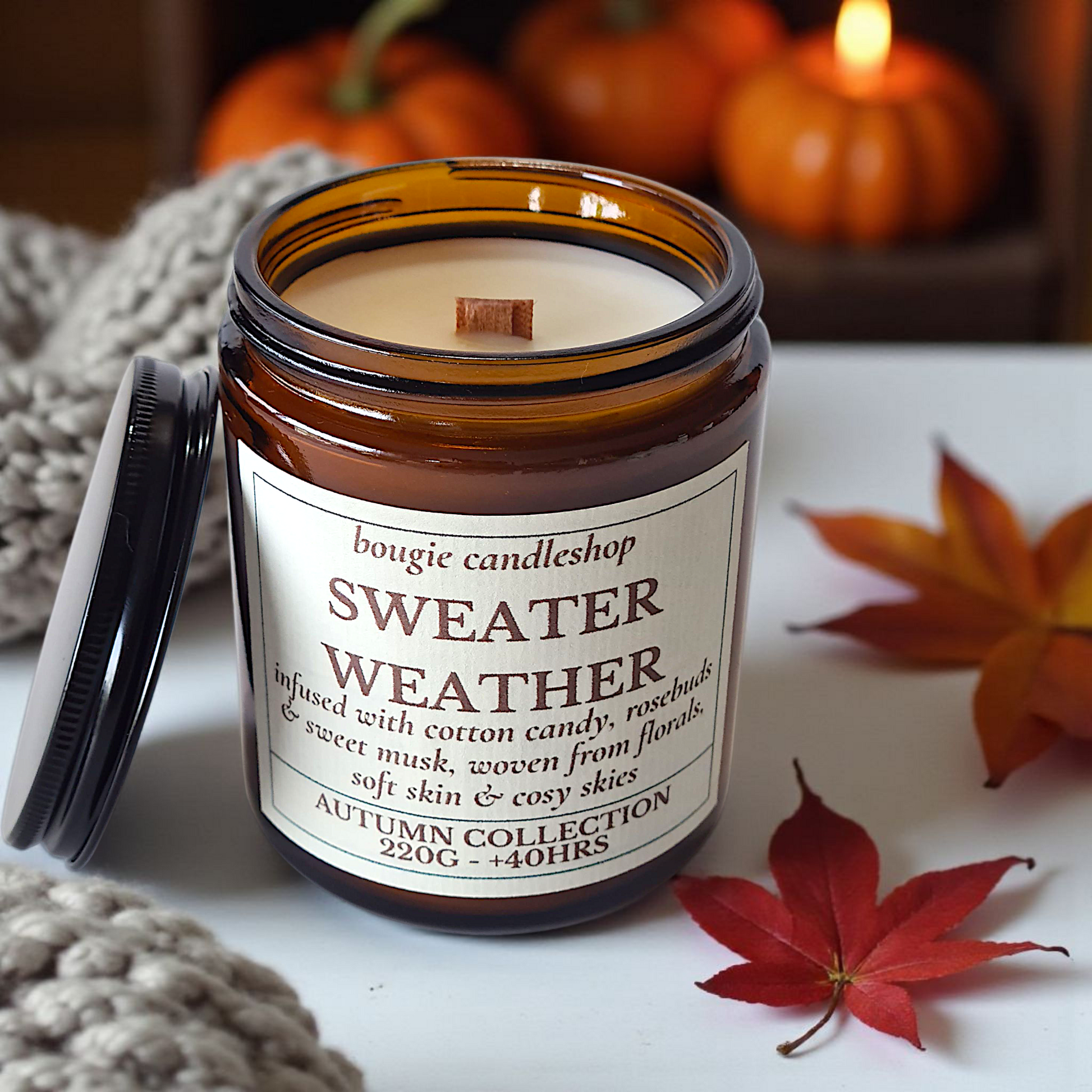 Sweater Weather is een zachte, poederige geur met een frisse opening en een warm, houtachtig hart. Denk aan een frisse herfstochtend, een dikke trui, en de geur van musk en bloemen in de lucht. Comfort in zijn puurste vorm.