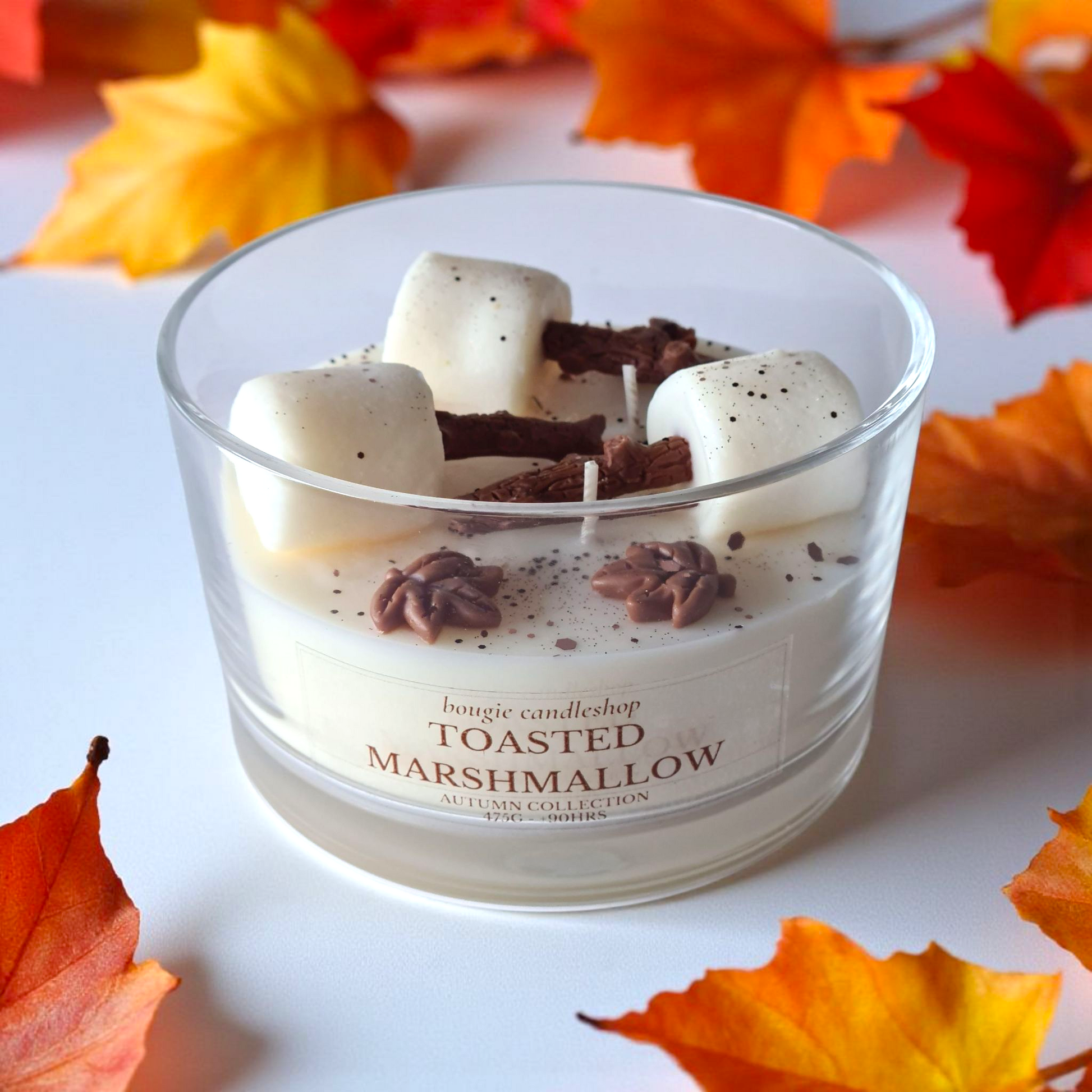 Toasted Marshmallow neemt je mee naar een gezellig kampvuurmoment. Een verleidelijke mix van geroosterde marshmallows, vanille en een vleugje houtrook creëert een warme sfeer voor eindeloze herfstgezelligheid.