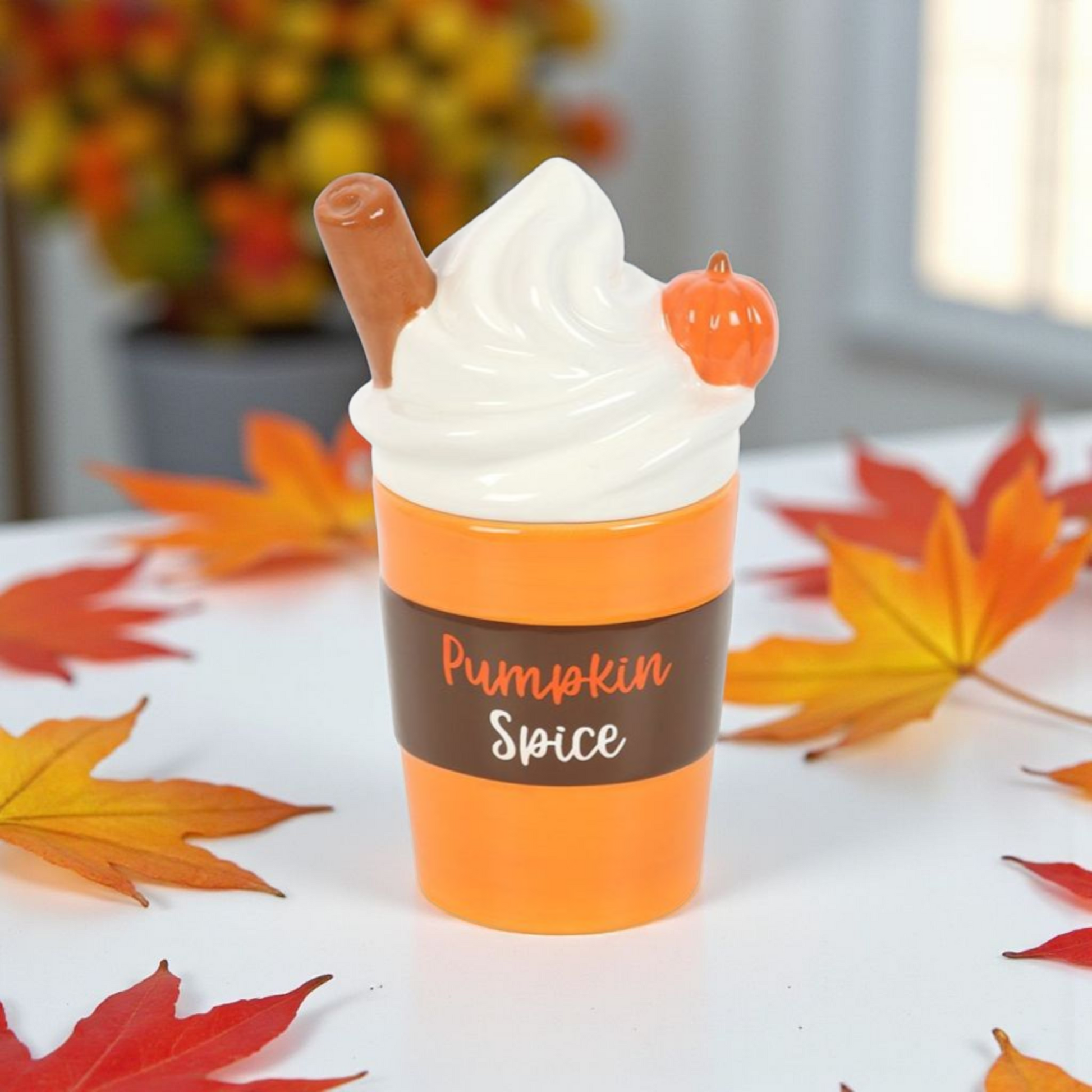 Een keramische waxwarmer geïnspireerd op een romige Pumpkin Spice Latte, met vloeiende lijnen en een subtiele glans. Plaats je waxmelts of geurolie in de open bovenkant (de deksel niet op het product laten zitten) en geniet van een gelijkmatige geurverspreiding.